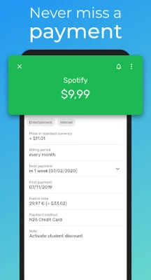 - Create regular and one-time subscriptions - Enter the billing period to see the next payment date - Add important data for each subscription (description, the start of payment, Payment method, and notes) - 160+ different currencies with the current exchange rate - Optional dark design - Backup possibility (including Google Drive option)