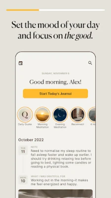 The Five Minute Journal app uses proven principles of positive psychology to make you happier in 5 minutes a day and focus on self-care, mental health and motivation.