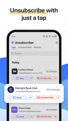 • Quickly UNSUBSCRIBE from overly enthusiastic stores and senders— unsubscribe one by one or in bulk.