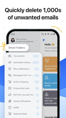 • Get a hand with CLEANING SUGGESTIONS — Clean Email learns from your behavior and preferences to suggest how to keep your inbox clean.