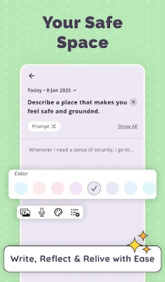 - Daily Diary: Write about your day, emotions, & thoughts in a private space.